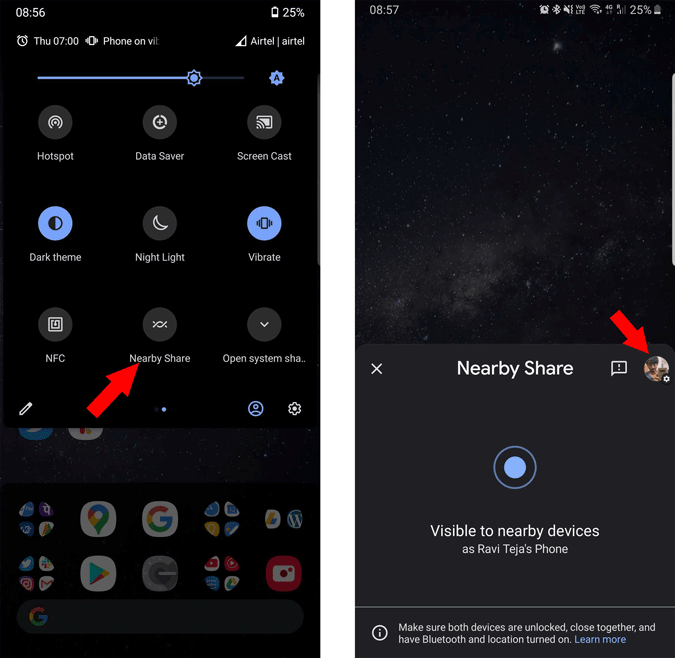 اس آپشن کو آن کرنے سے اپنے فون میں موجود کسی بھی نمبر پر اگر وہ فون آپ کے ارد گرد موجود ہو تو کچھ بھی شئیر کر سکتے ہیں مگر اس کے لئے دوسرے شخص کی اجازت طلب ہوگی اور جیسے ہی وہ ایکسیپٹ کرے گا تو آپ کچھ بھی شئیر کر سکیں گے۔